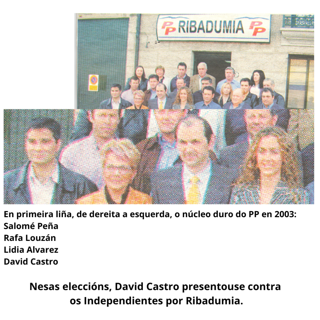 A min iso dáme igual. Que os do PP atendan del. Pero ese señor goberna o meu concello e a Mancomunidade, e non ten o máis mínimo interese nin nunha cousa nin na outra. A Mancomunidade era o exemplo de que é posible o entendemento entre contrarios. Pero David fixo nese ente o mesmo que fixo en Ribadumia, apoiarse en outros para chegar arriba, e despois rebentar todo, traizoando e mentindo a todo o mundo. Porque o obxectivo non é arranxar nin mudar nada, o obxectivo é seguir ata a próxima meta.